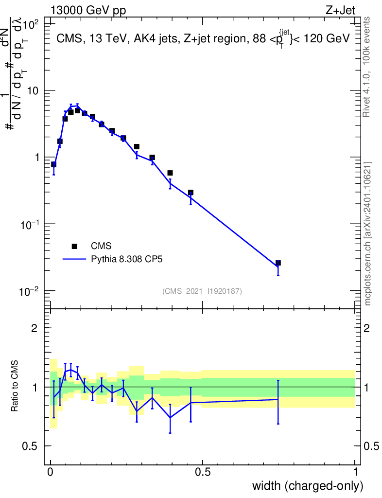 Lines: data, pythia8 8.308 CP5 |