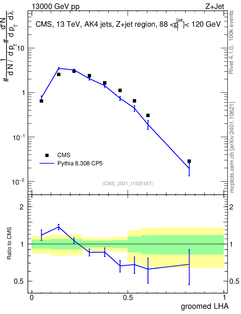 Lines: data, pythia8 8.308 CP5 |