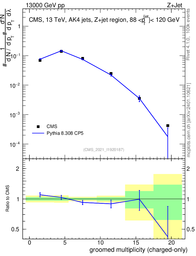 Lines: data, pythia8 8.308 CP5 |