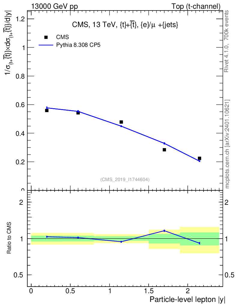Lines: data, pythia8 8.308 CP5 |