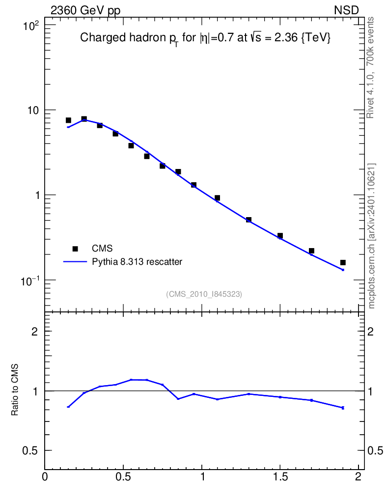 Lines: data, pythia8 8.313 rescatter |