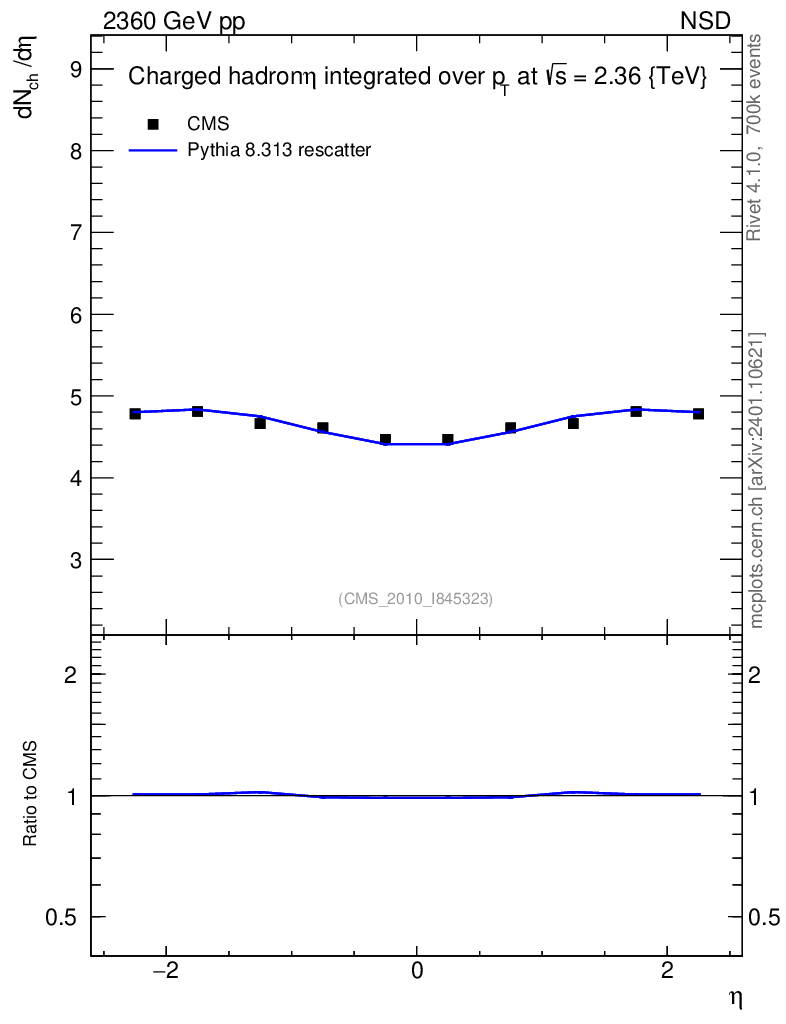 Lines: data, pythia8 8.313 rescatter |