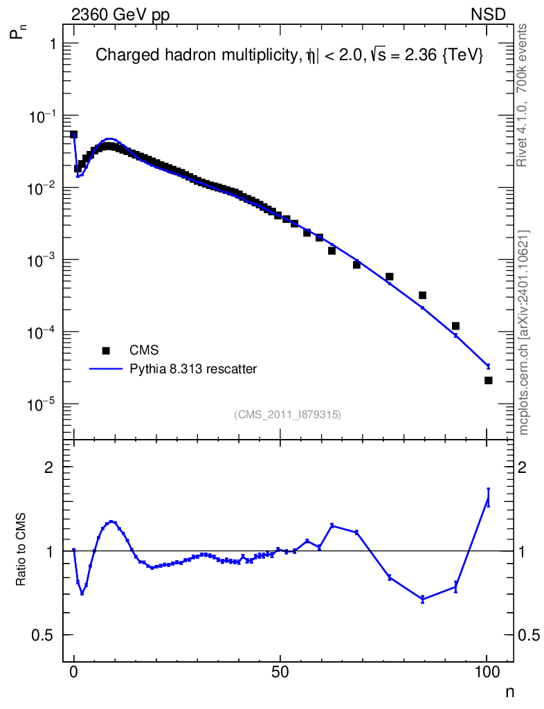 Lines: data, pythia8 8.313 rescatter |