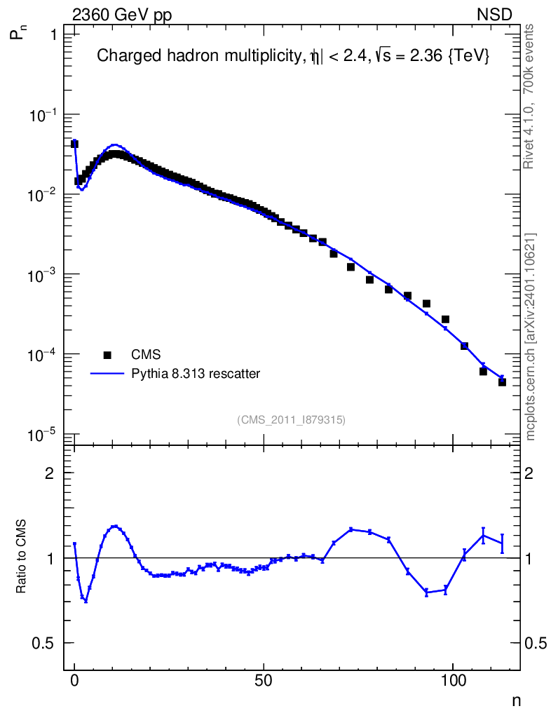 Lines: data, pythia8 8.313 rescatter |