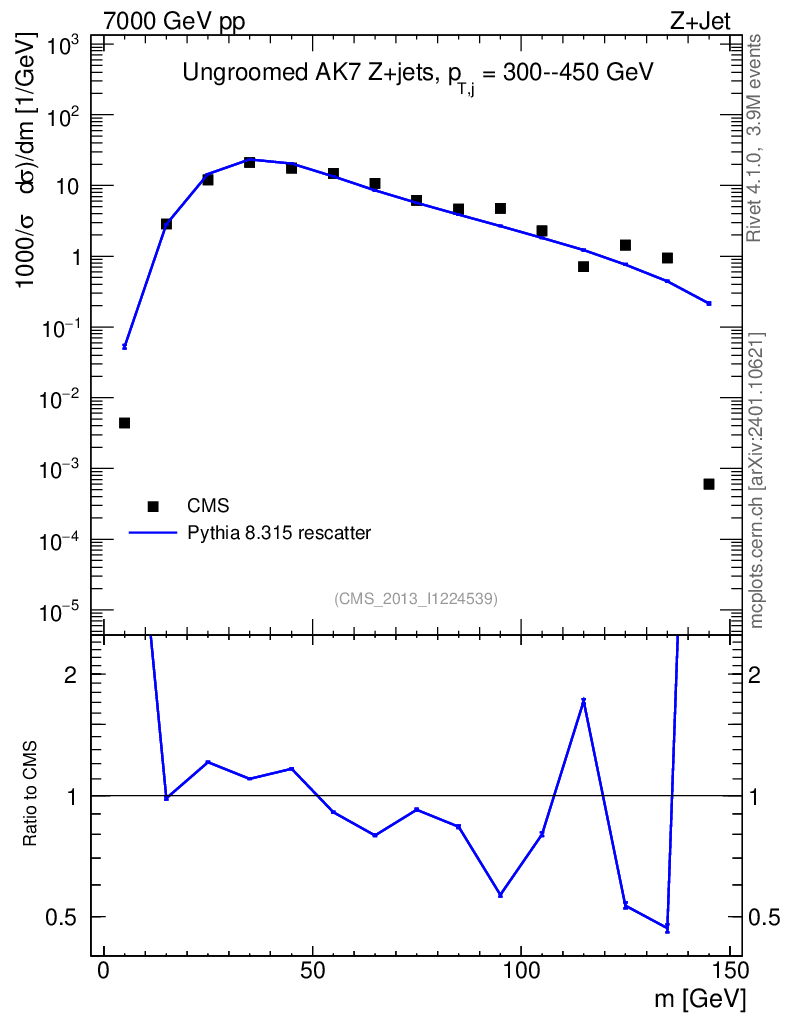 Lines: data, pythia8 8.315 rescatter |