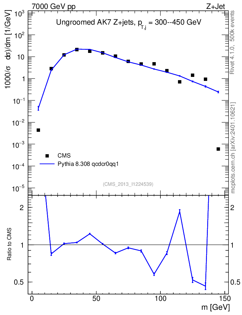 Lines: data, pythia8 8.308 qcdcr0qq1 |