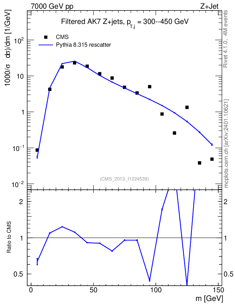 Lines: data, pythia8 8.315 rescatter |