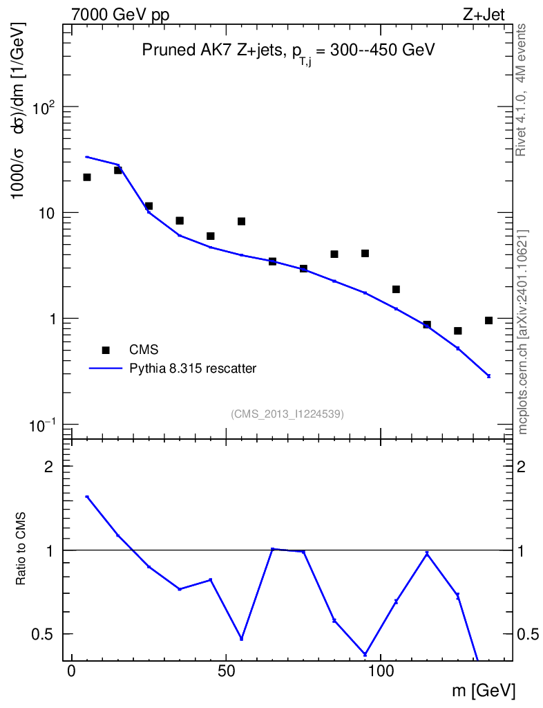 Lines: data, pythia8 8.315 rescatter |