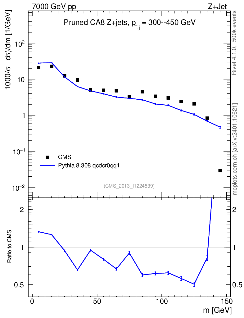 Lines: data, pythia8 8.308 qcdcr0qq1 |