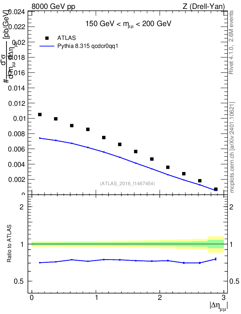 Lines: data, pythia8 8.315 qcdcr0qq1 |