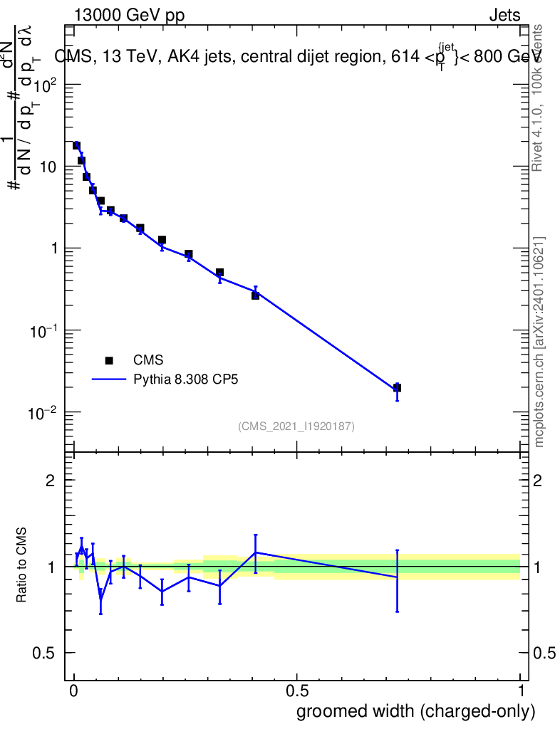 Lines: data, pythia8 8.308 CP5 |