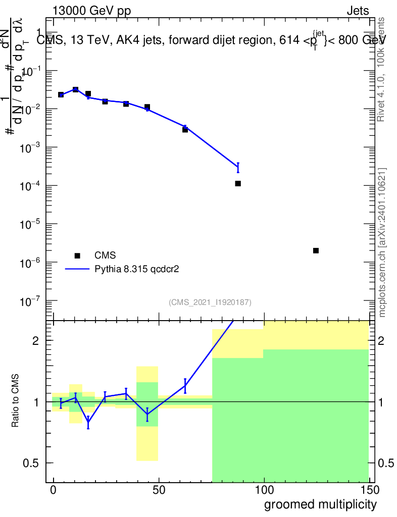 Lines: data, pythia8 8.315 qcdcr2 |