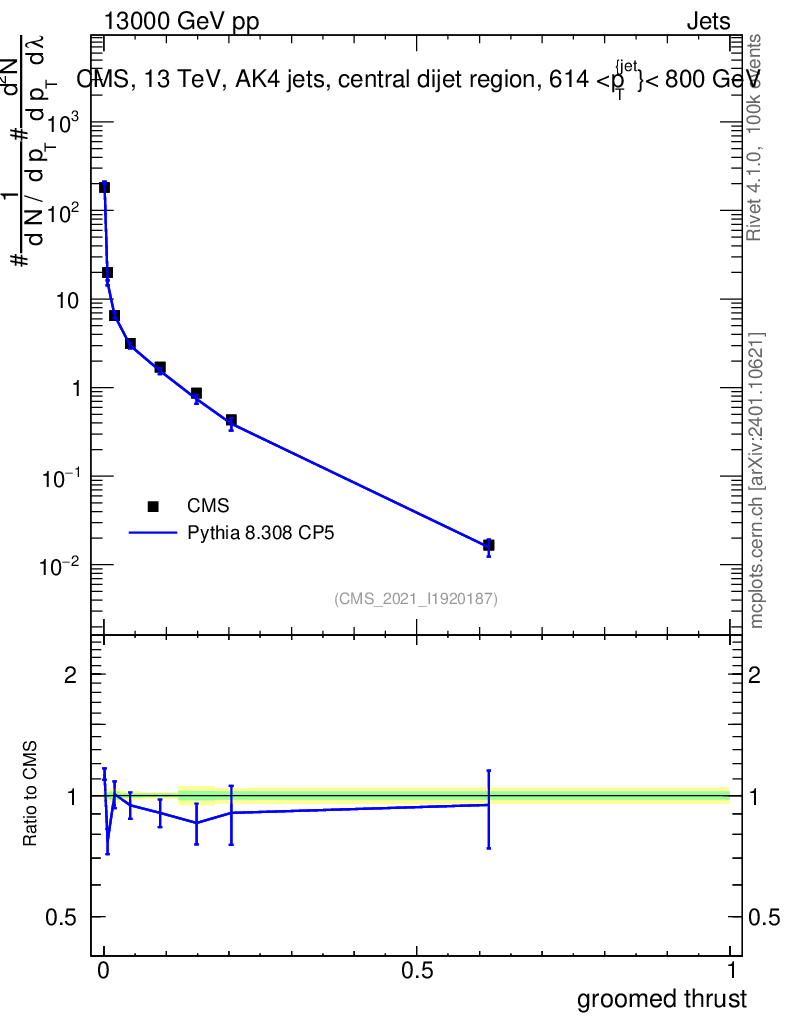 Lines: data, pythia8 8.308 CP5 |