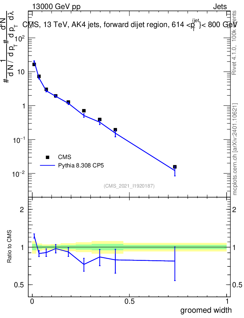 Lines: data, pythia8 8.308 CP5 |