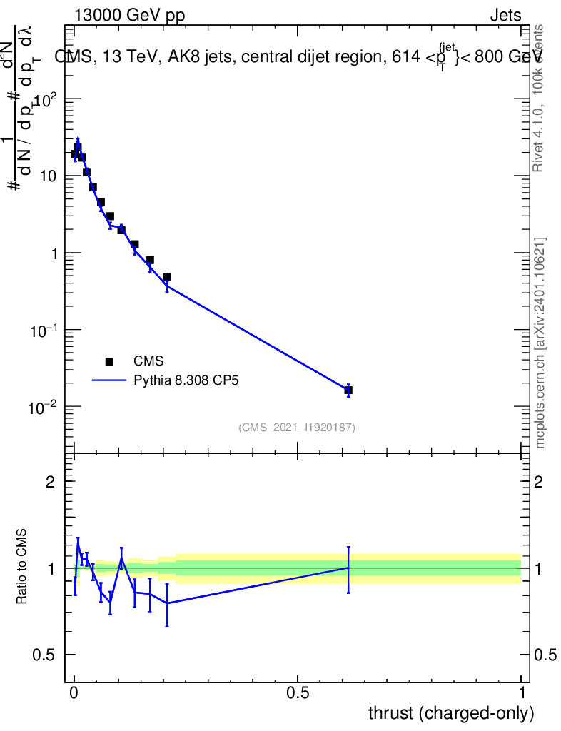 Lines: data, pythia8 8.308 CP5 |