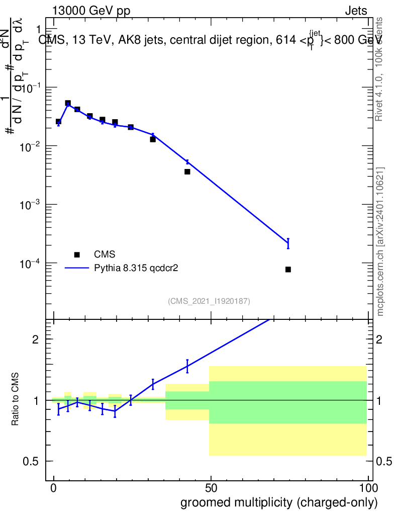 Lines: data, pythia8 8.315 qcdcr2 |