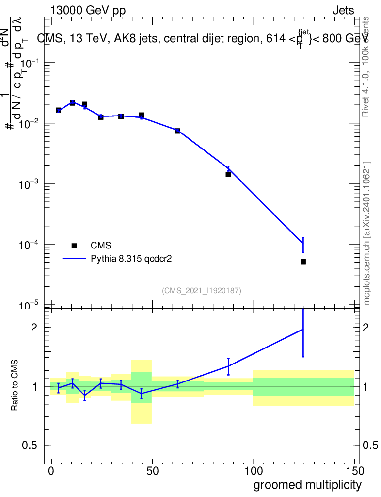 Lines: data, pythia8 8.315 qcdcr2 |