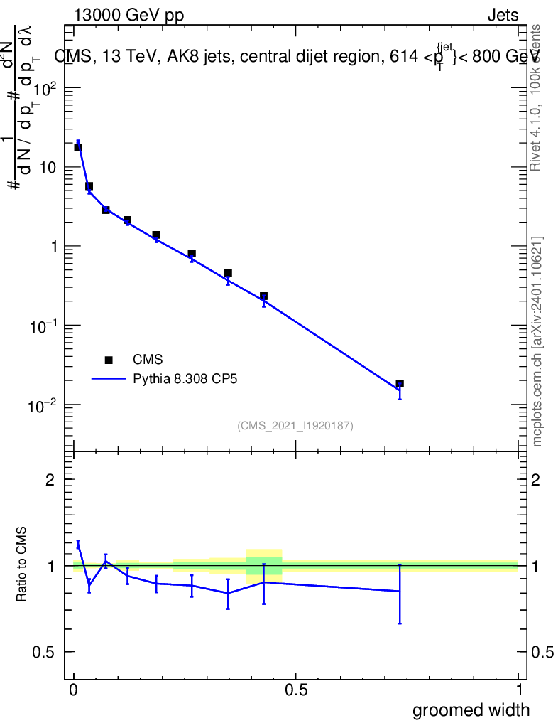 Lines: data, pythia8 8.308 CP5 |