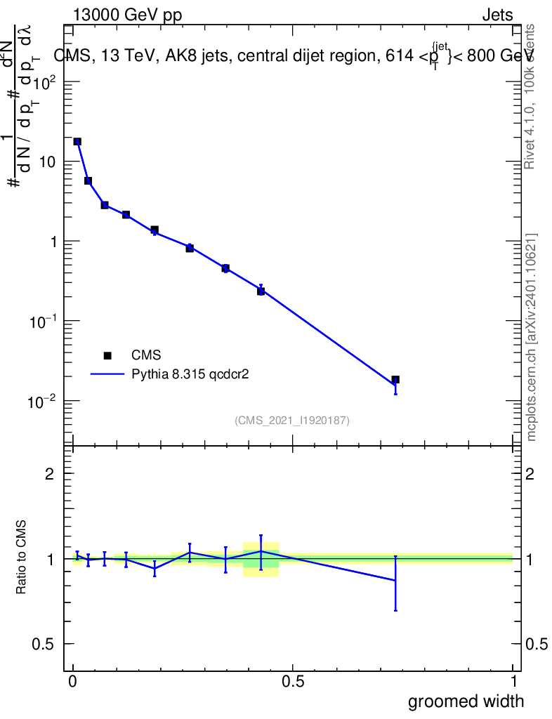 Lines: data, pythia8 8.315 qcdcr2 |