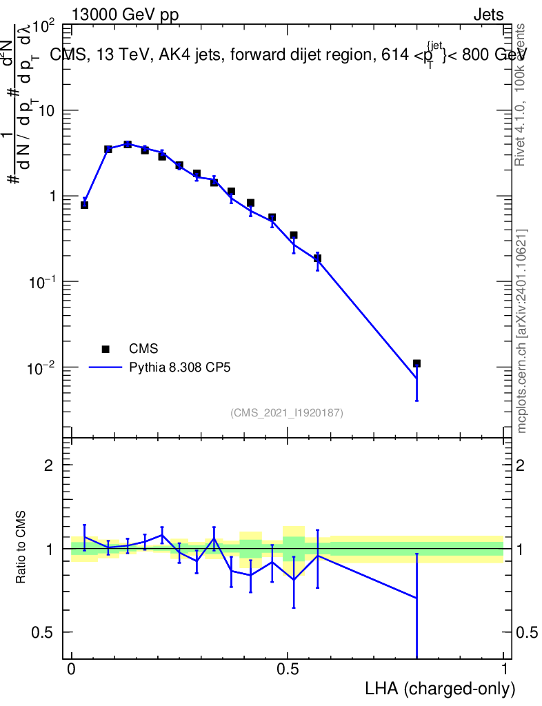 Lines: data, pythia8 8.308 CP5 |