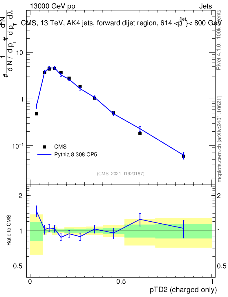 Lines: data, pythia8 8.308 CP5 |