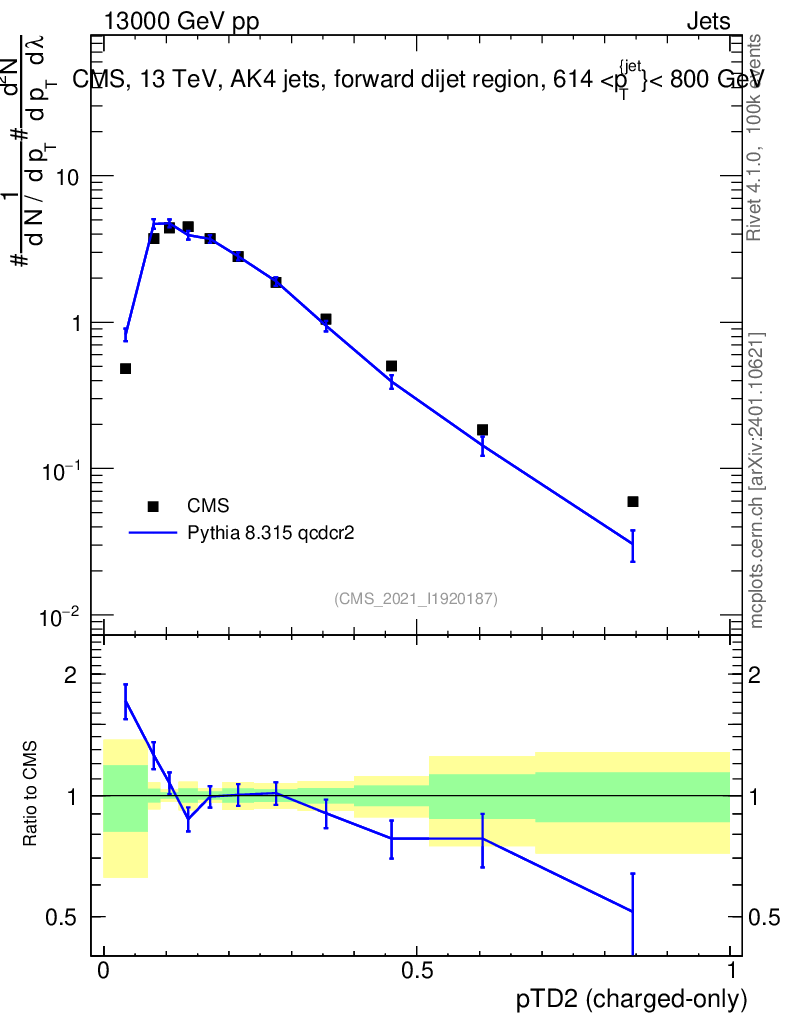 Lines: data, pythia8 8.315 qcdcr2 |
