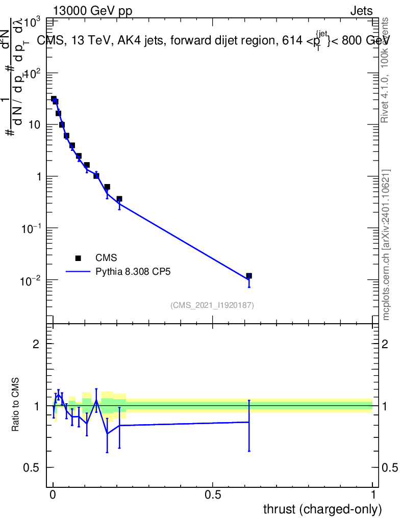 Lines: data, pythia8 8.308 CP5 |