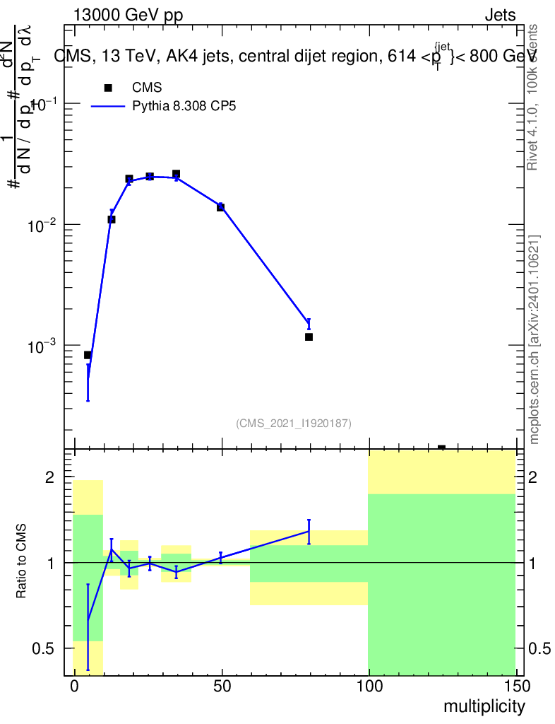 Lines: data, pythia8 8.308 CP5 |