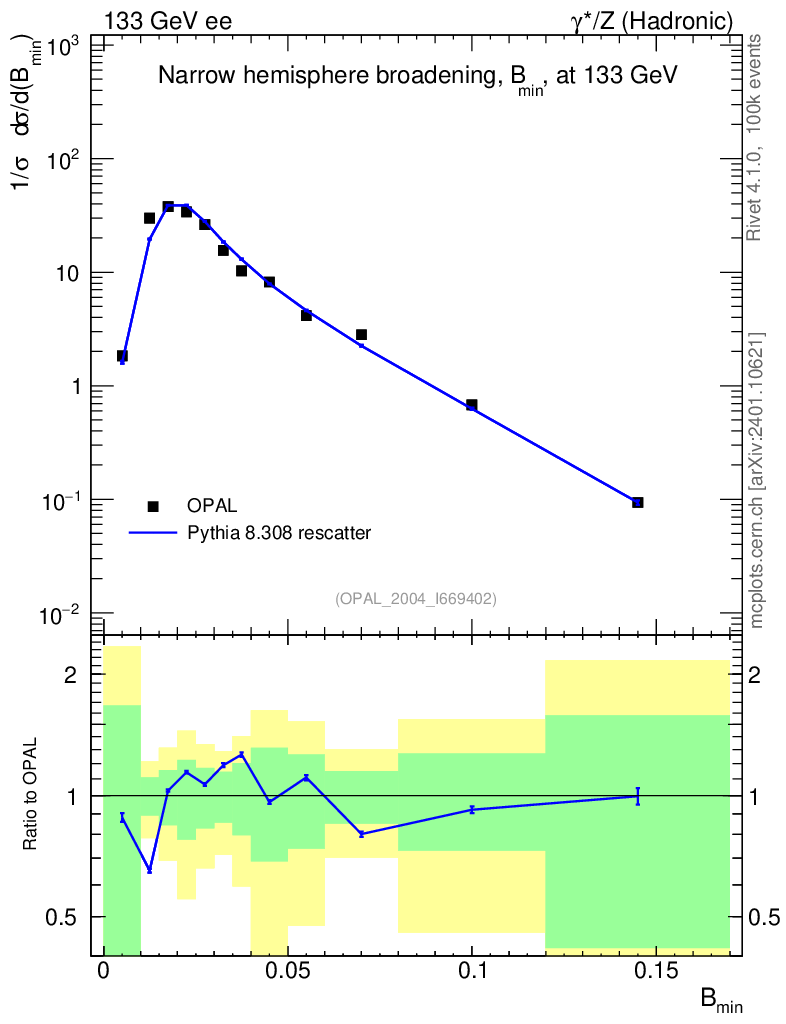 Lines: data, pythia8 8.308 rescatter |