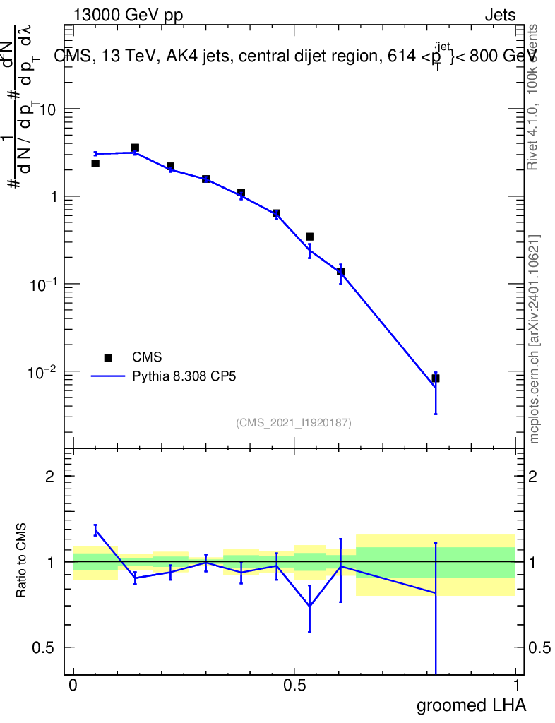 Lines: data, pythia8 8.308 CP5 |
