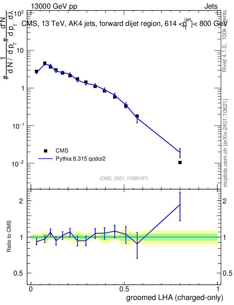 Lines: data, pythia8 8.315 qcdcr2 |