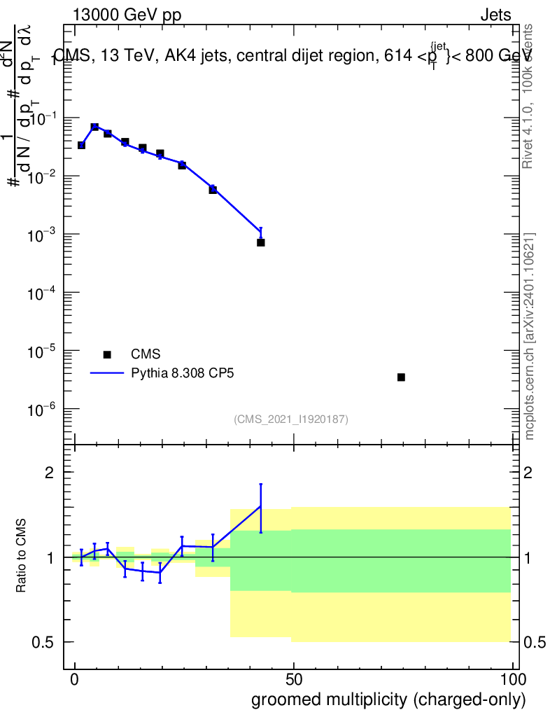 Lines: data, pythia8 8.308 CP5 |