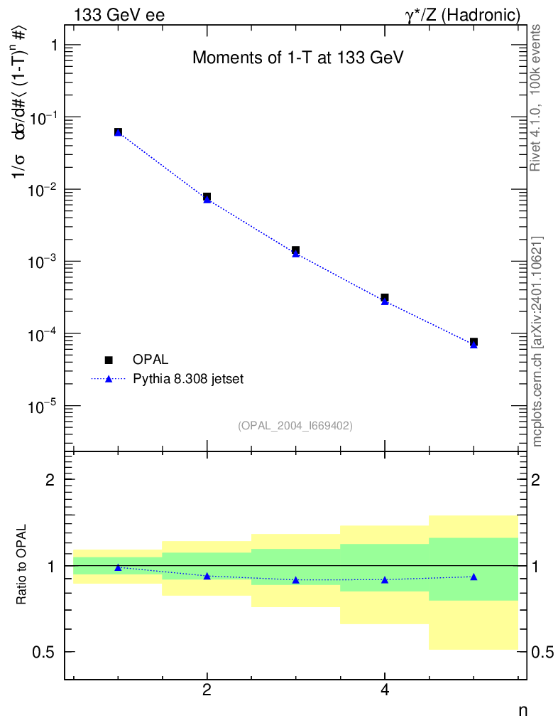 Lines: data, pythia8 8.308 jetset |