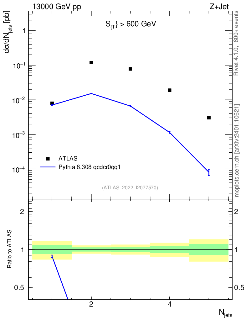 Lines: data, pythia8 8.308 qcdcr0qq1 |