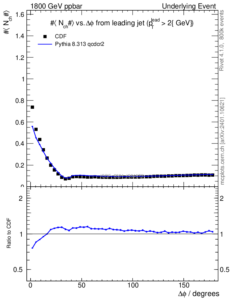 Lines: data, pythia8 8.313 qcdcr2 |