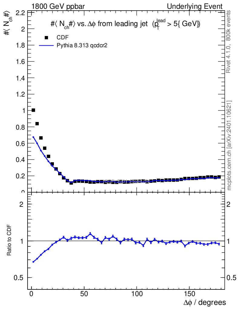 Lines: data, pythia8 8.313 qcdcr2 |