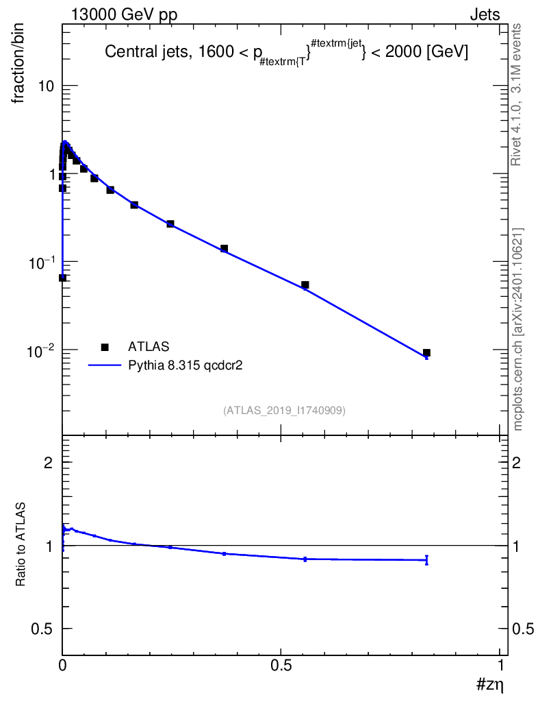 Lines: data, pythia8 8.315 qcdcr2 |