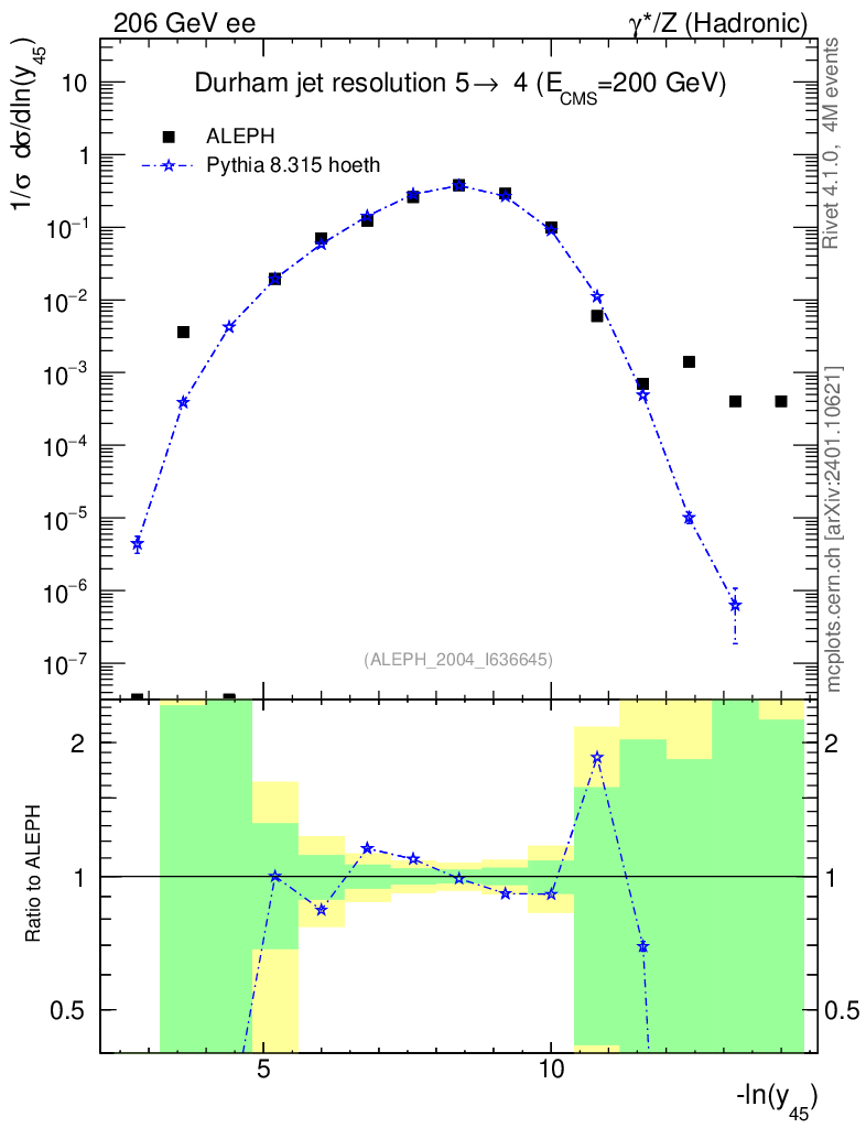 Lines: data, pythia8 8.315 hoeth |