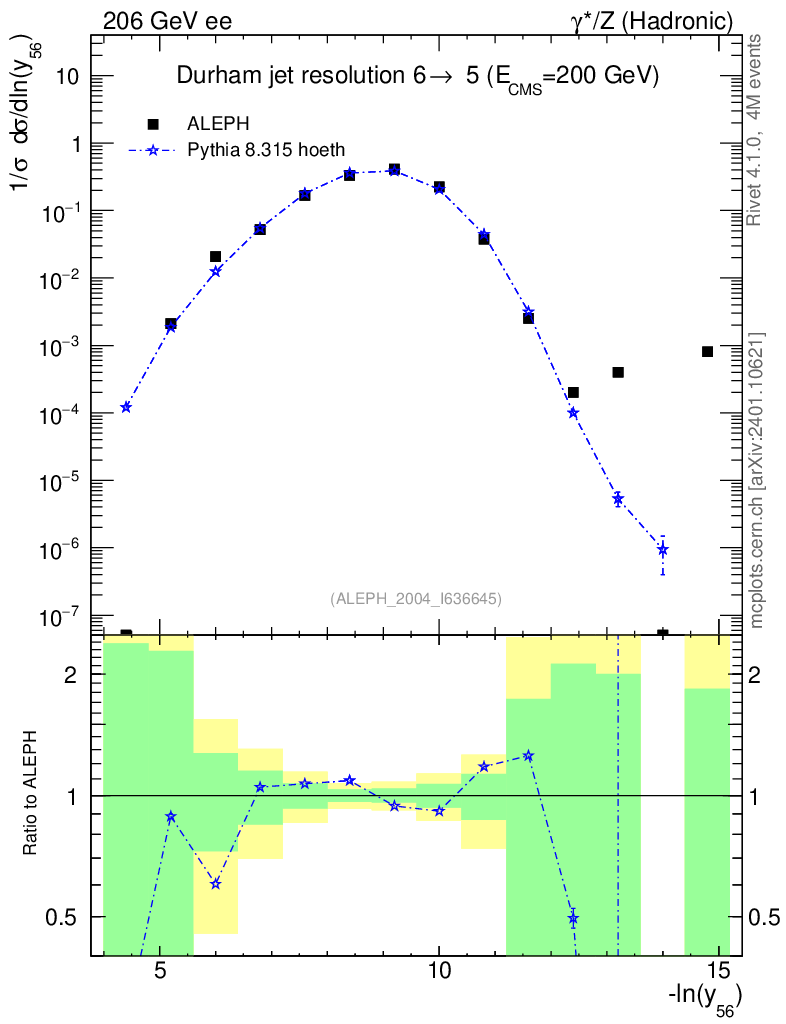 Lines: data, pythia8 8.315 hoeth |