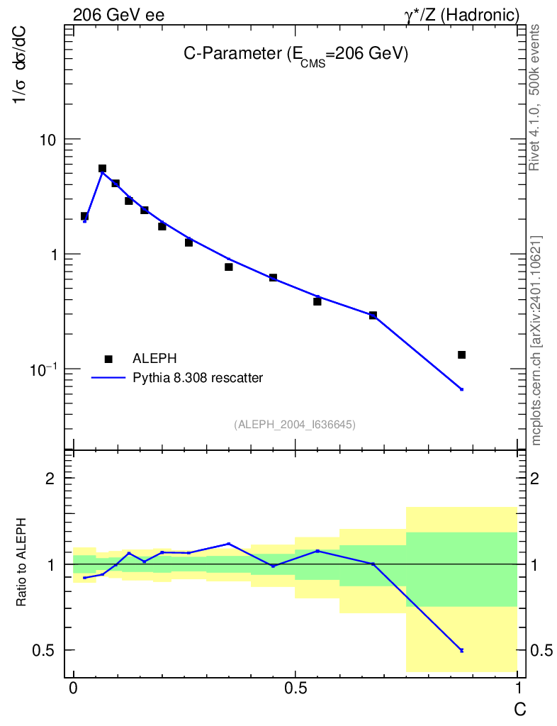 Lines: data, pythia8 8.308 rescatter |