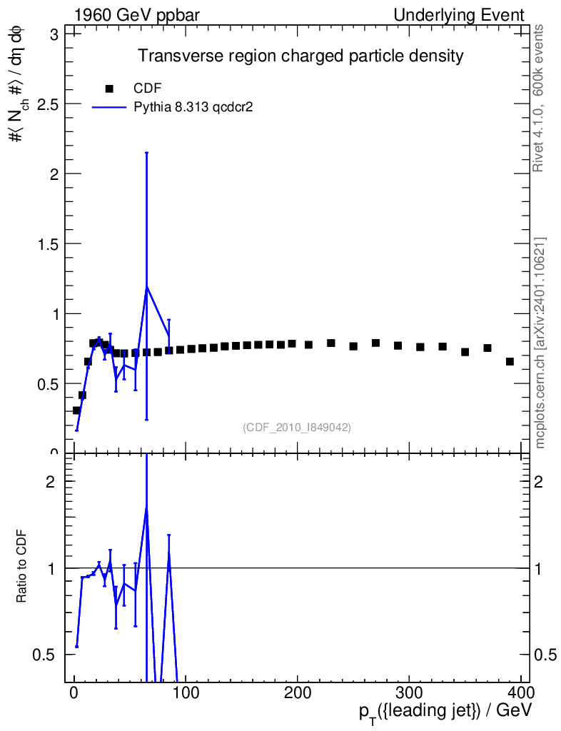 Lines: data, pythia8 8.313 qcdcr2 |