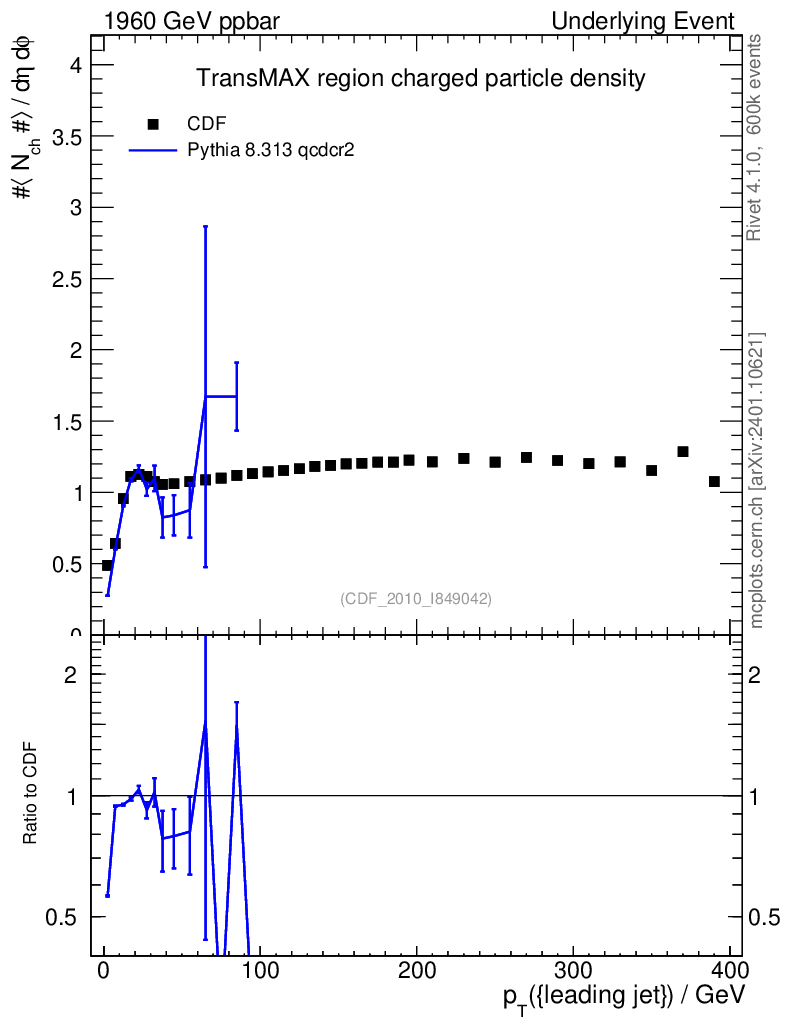 Lines: data, pythia8 8.313 qcdcr2 |