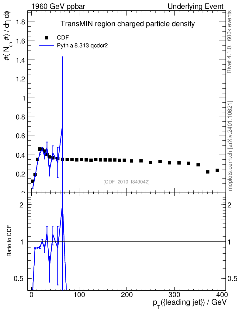 Lines: data, pythia8 8.313 qcdcr2 |