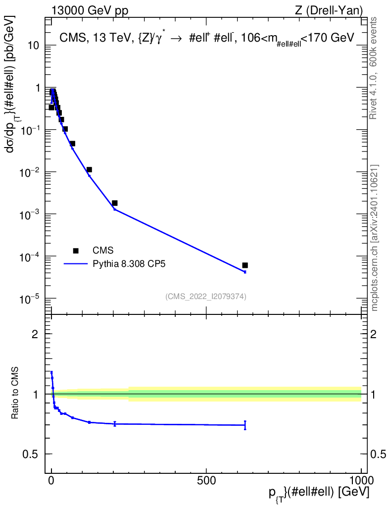 Lines: data, pythia8 8.308 CP5 |