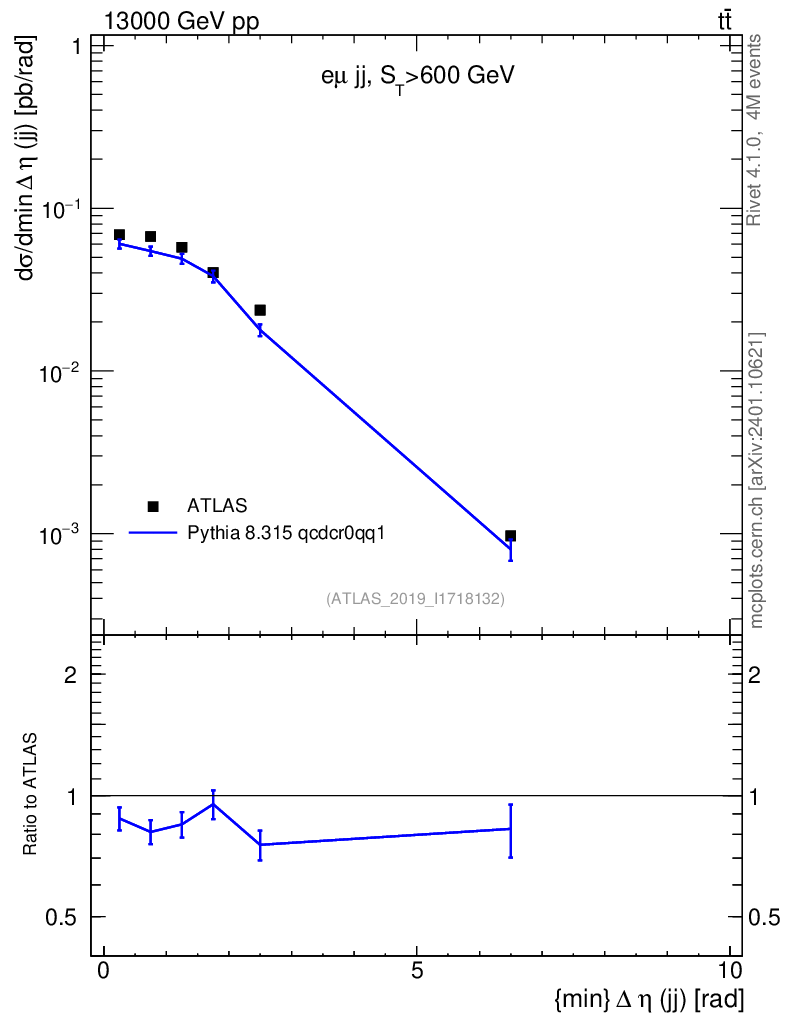 Lines: data, pythia8 8.315 qcdcr0qq1 |