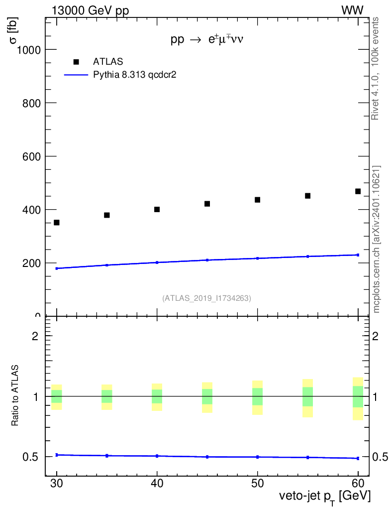 Lines: data, pythia8 8.313 qcdcr2 |