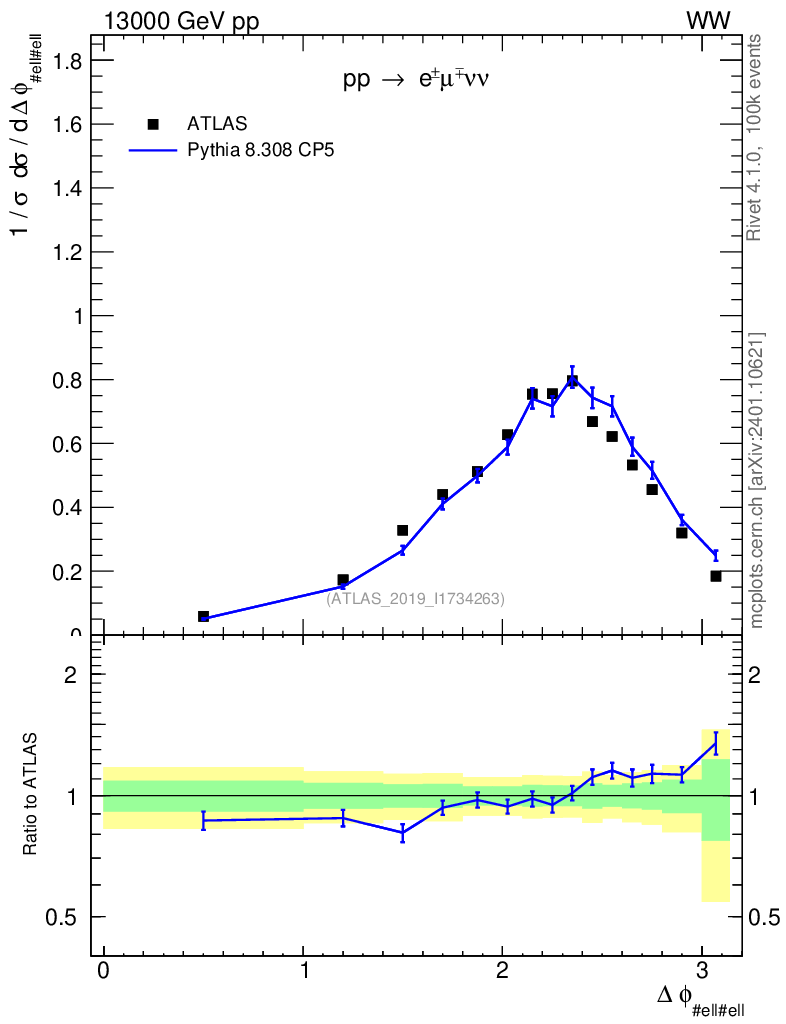Lines: data, pythia8 8.308 CP5 |