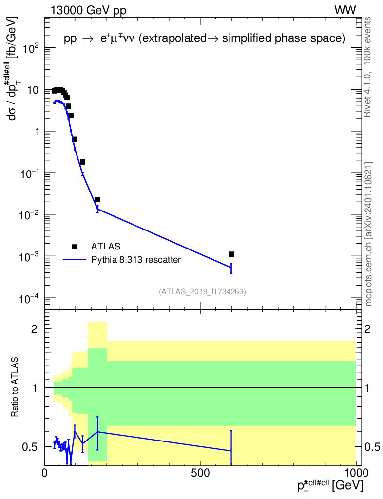 Lines: data, pythia8 8.313 rescatter |