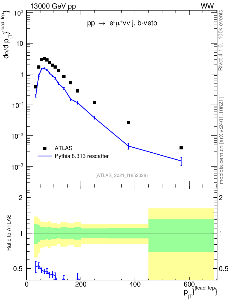 Lines: data, pythia8 8.313 rescatter |