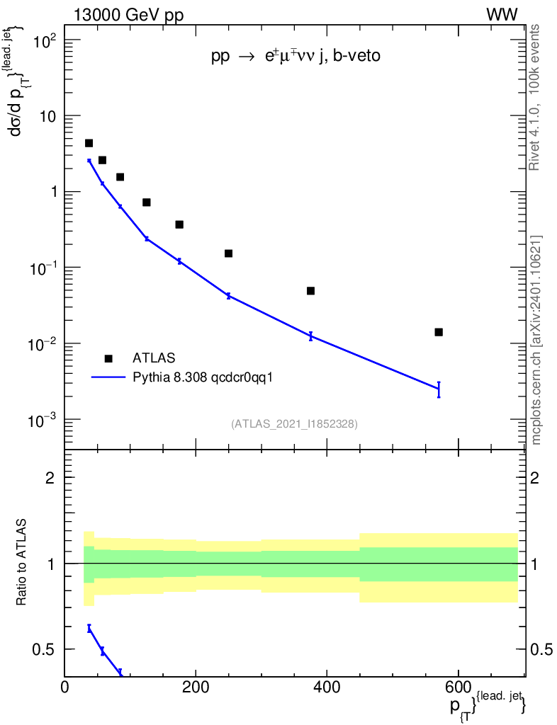 Lines: data, pythia8 8.308 qcdcr0qq1 |